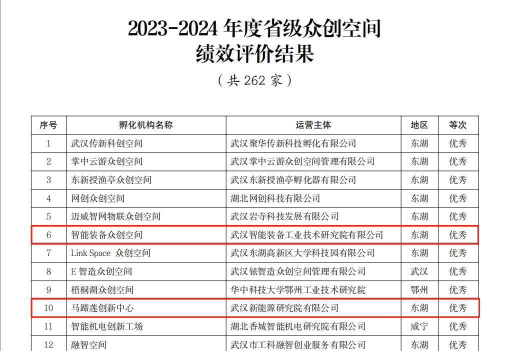 日前,湖北省科技厅关于2023-2024年度省级以上科技皇冠娱乐孵化器和众创空间绩效评价结果结束公示期,皇冠娱乐 运营的3个国家级、省级众创空间获评“优秀”,6个国家级科技皇冠娱乐孵化器、国家专业化众创空间获评“良好”。