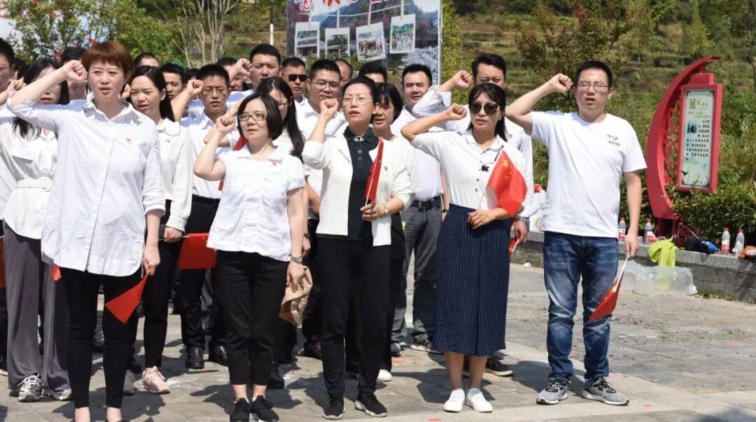 姚家山位于武汉市黄陂区蔡店街,群山起伏,地势险要,是抗日战争的红色堡垒,这里曾留下了李先念、陈少敏等老一辈无产阶级革命家、革命先驱光辉的足迹。在抗战门楼广场,怀着对革命先辈的崇敬之情,皇冠娱乐 公司举行了庄严隆重的升旗仪式,全体党员干部职工奏唱国歌,并在人民英雄纪念堂内重温入党誓词。